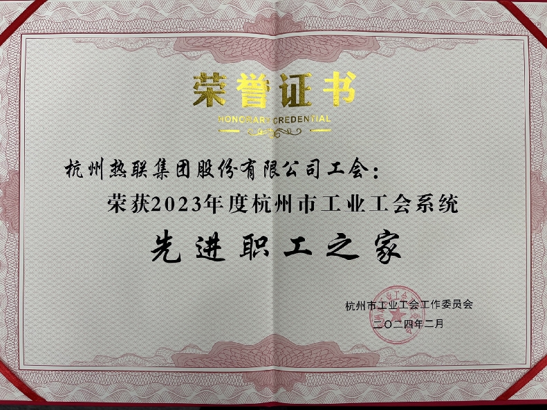 熱聯(lián)集團工會獲2023年度杭州市工業(yè)工會系統(tǒng)“先進職工之家”榮譽稱號